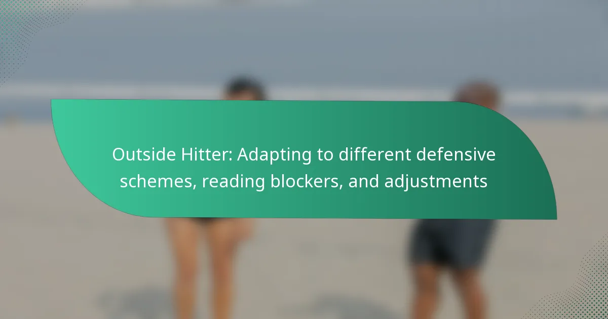 Outside hitters adapt to various defensive schemes by analyzing the opposing team’s formations and adjusting their strategies accordingly. This involves understanding the strengths and weaknesses of different defensive setups and effectively communicating with teammates to exploit gaps and create scoring opportunities.