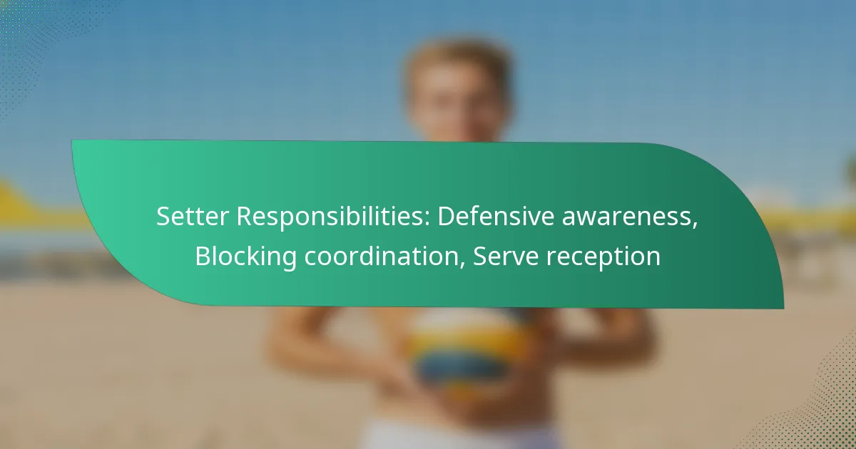 The setter in volleyball is essential for both offensive and defensive strategies, with key responsibilities that include defensive awareness, blocking coordination, and serve reception. By maintaining strong defensive awareness, setters can anticipate plays and position themselves effectively, while blocking coordination ensures seamless communication and timing with teammates. Their role is vital in orchestrating successful plays and enhancing overall team performance.